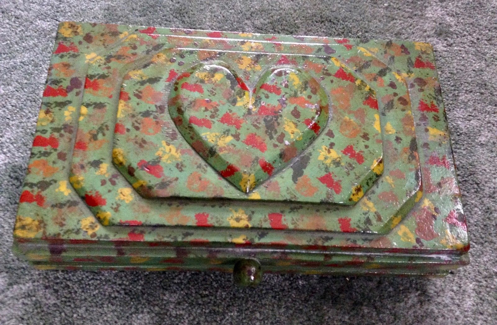 Antique Folk Art Box has Great Old Paint Surface Heart Shaped Top Handmade NICE!