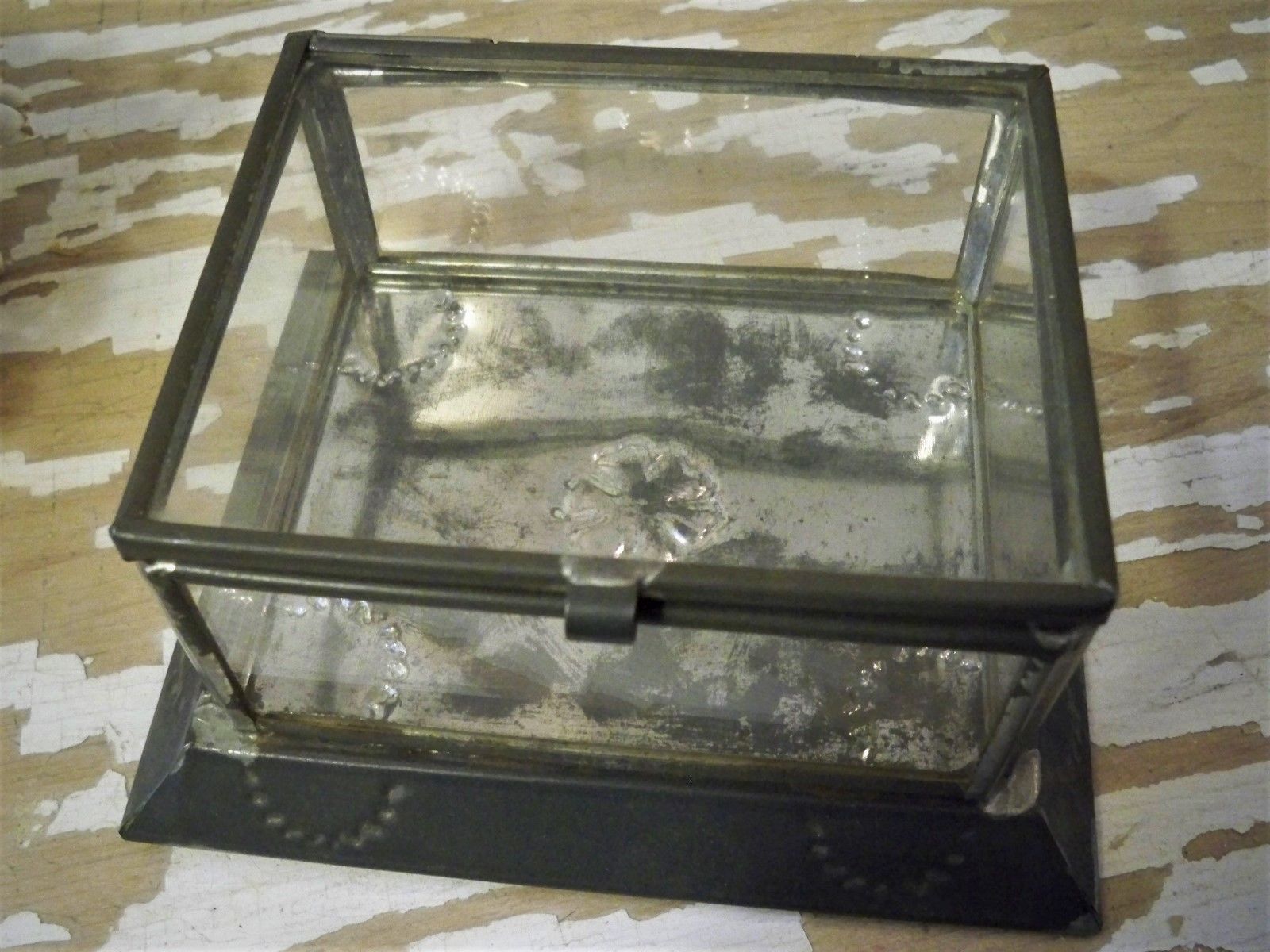 MEXICAN FOLK ART Vintage Pressed TIN & GLASS Hand Made BOX Jewelry ~ Trinket