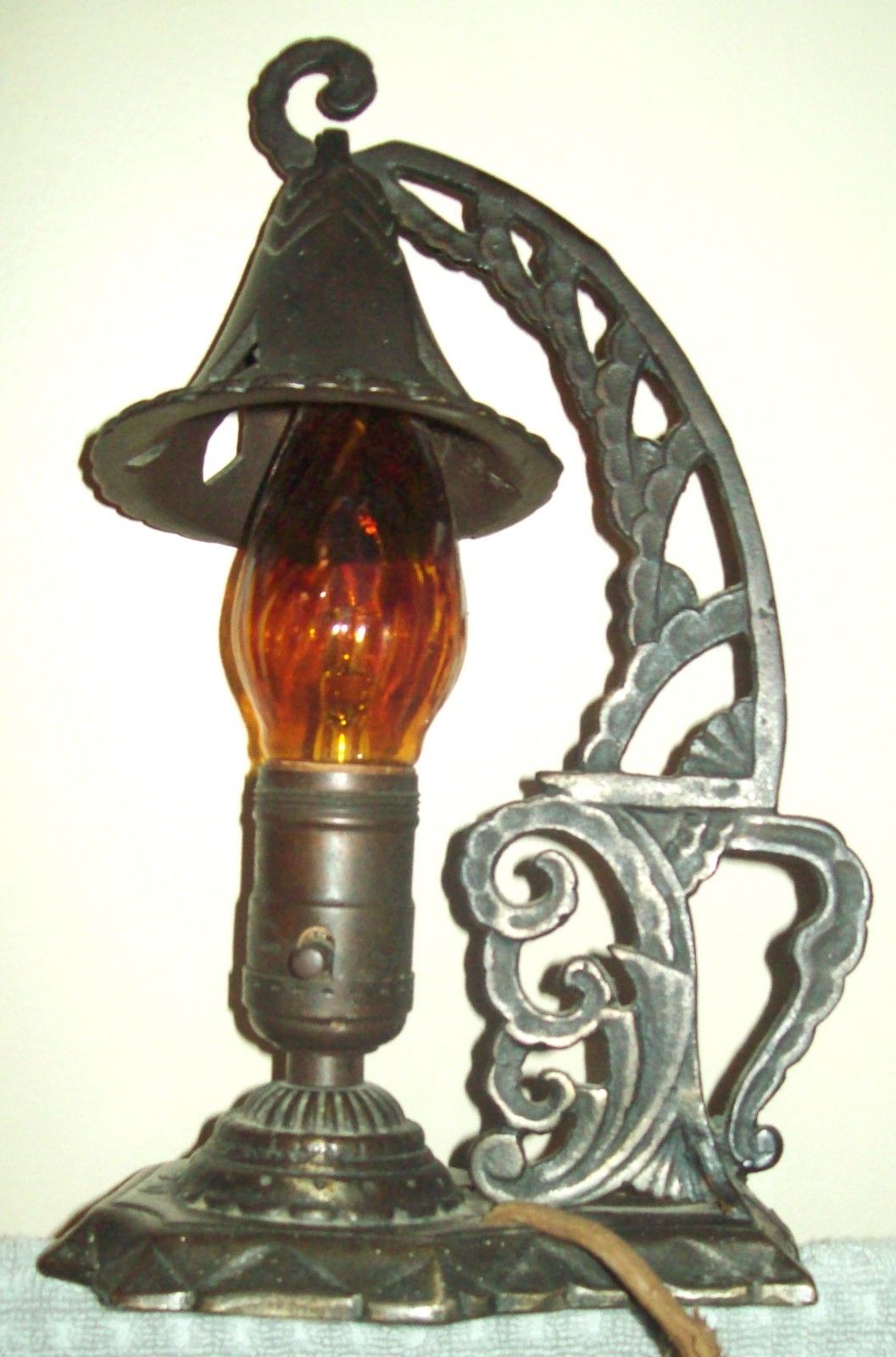 Title (ebay affiliate link): ART DECO CAST IRON FAIRYLAND DELL SIGNED CROWN LAMP BELLFLOWER SHADE 10.75" TALL