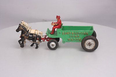 Cast Iron Vintage Horse Drawn Contractors Dump Wagon