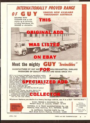 GUY 1961 TRUCK MAGAZINE ADVERTISEMENT