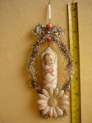 Title (ebay affiliate link): VTG.PAPIER BABY IN TINSEL ROUND CHRISTMAS TREE ORNAMENT