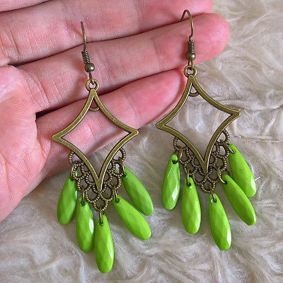 Title (ebay affiliate link): Vintage Womens Boho Antique Hollow Rhombus Green Bead Dangle Drop Hook Earrings