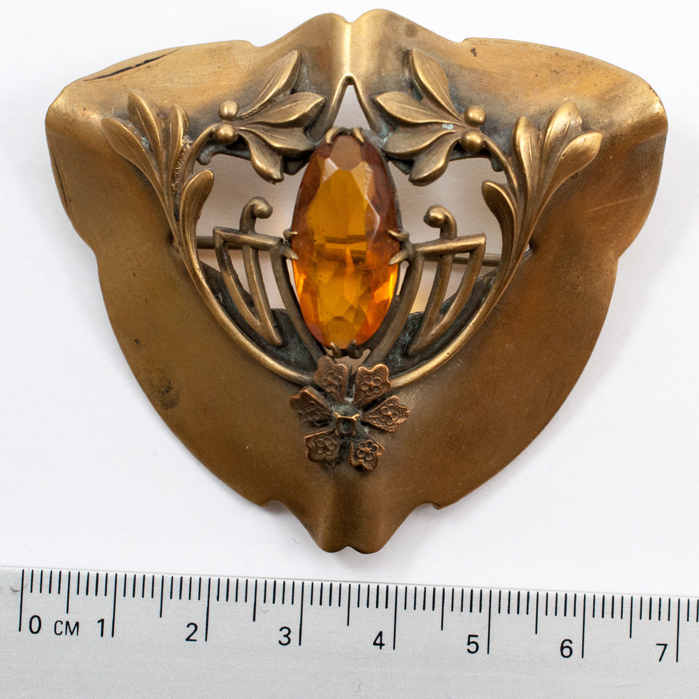 Title (ebay affiliate link): Antique Victorian Filigree Brooch Orange Rhinestone Brass Fancy C Clasp