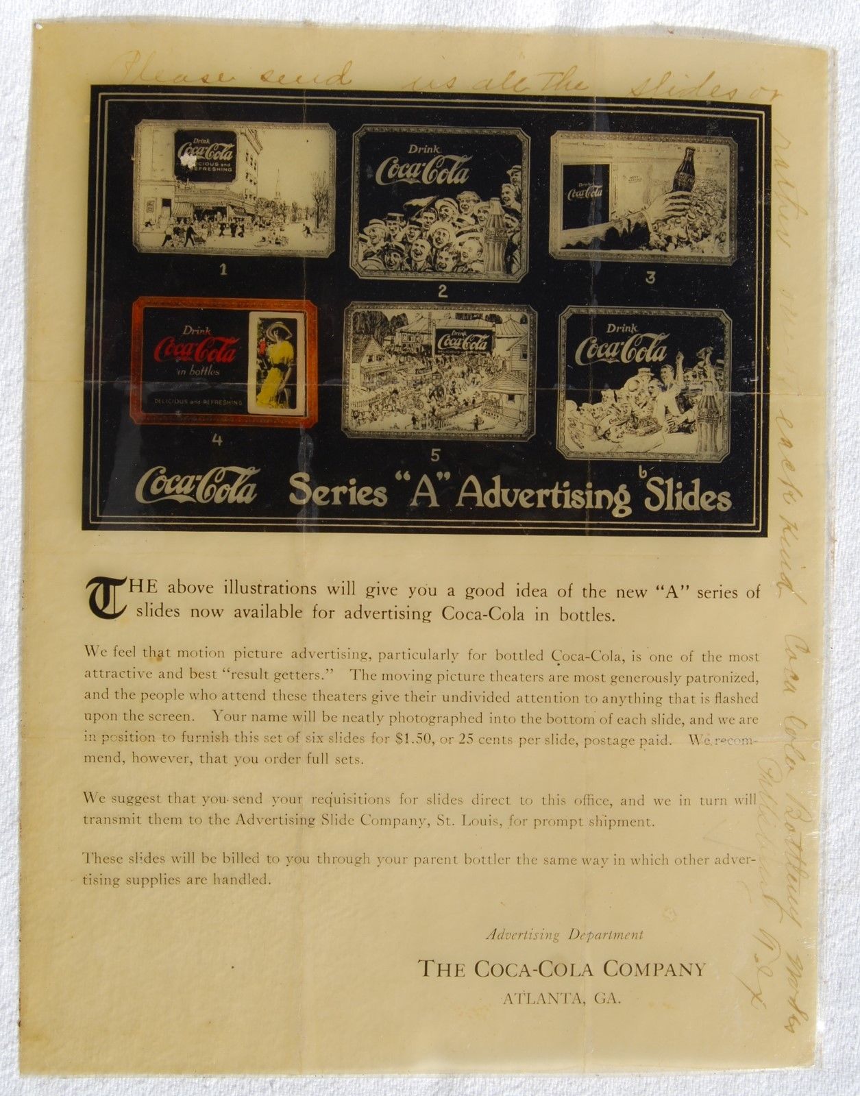 Antique Coke Advertising Slides for Movie Theaters - Sales Brochure