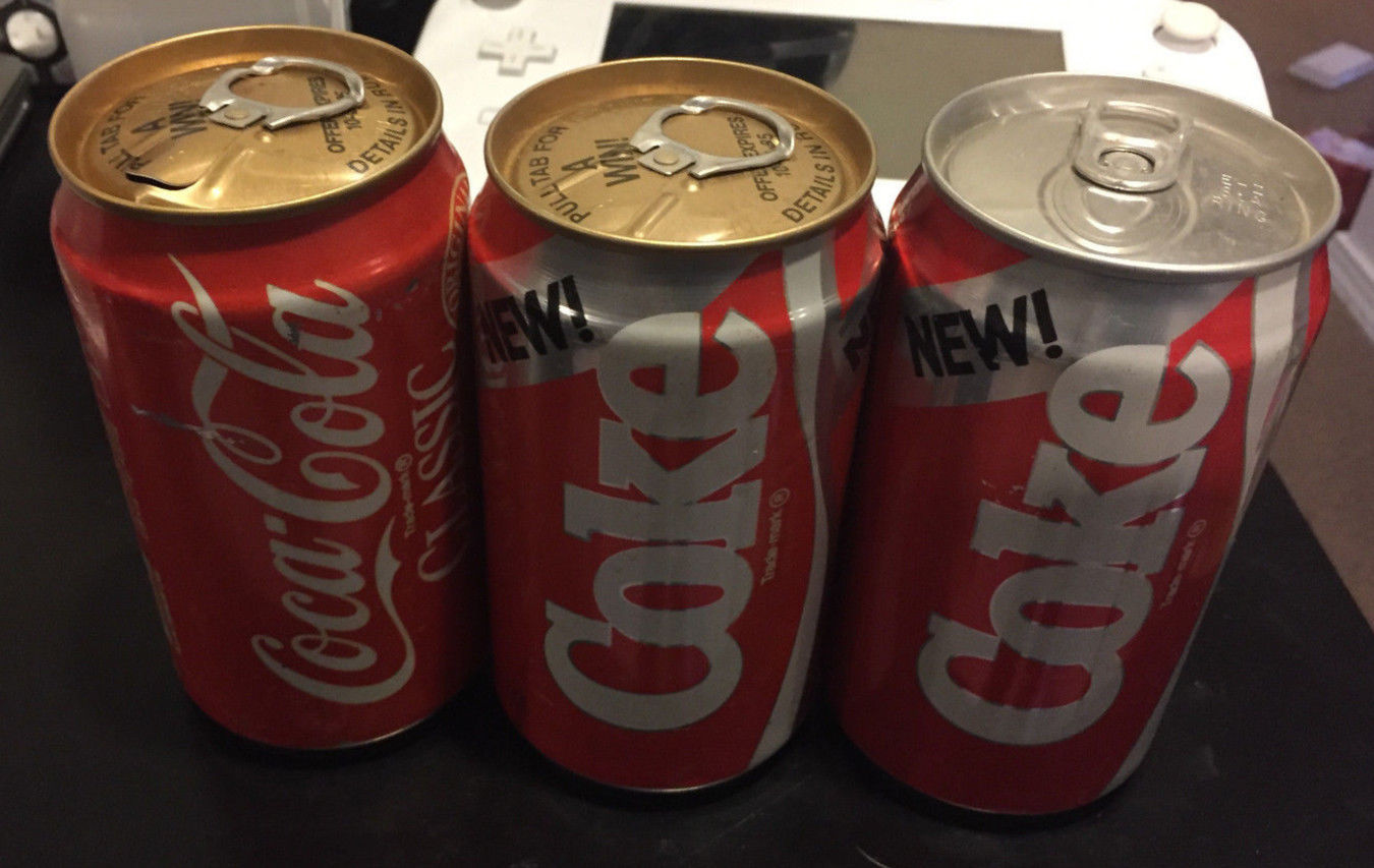 Title (ebay affiliate link): New Formula 1985 Vintage Coke Cola Classic Can Lot