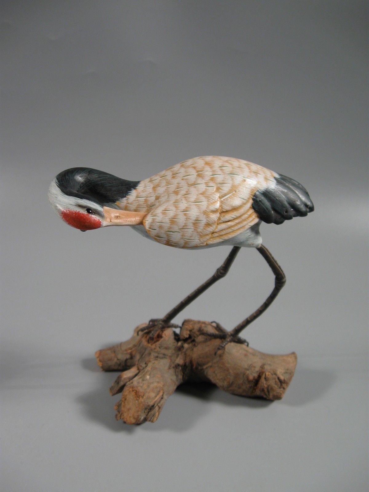 Vintage Wood Sculpture Heron Crane On Log
