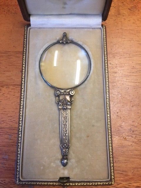 Gorgeous antique French magnifying glass in original box . Shreve