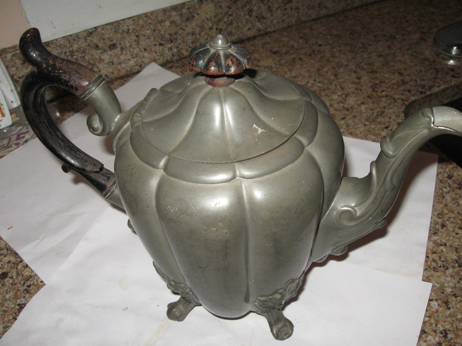 Antique Victorian Pewter Teapot James Dixon Ornate