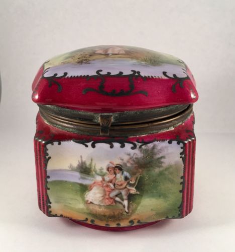 Beautiful Antique Hand Painted Scenic Dresser Box