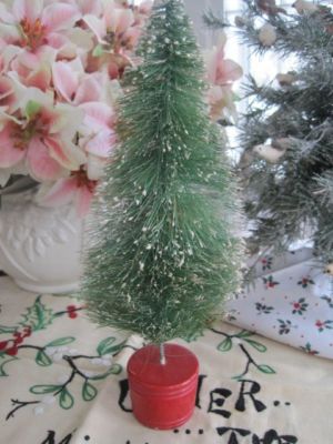 Title (ebay affiliate link): Vtg Bottle Brush Christmas Tree Red Wooden Base 12" #B