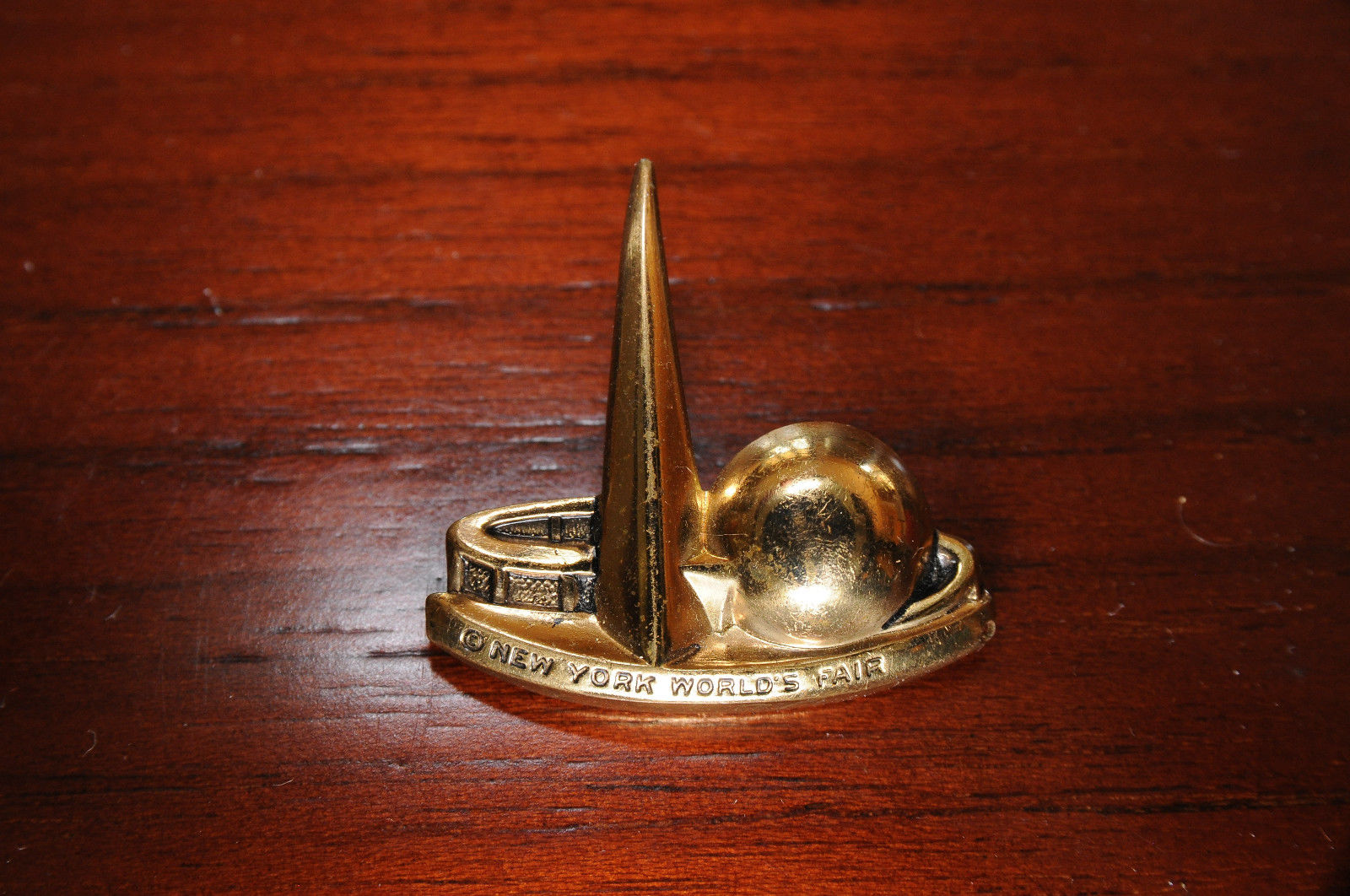 Title (ebay affiliate link): Antique Art Deco 1939 New York Worlds Fair Embossed Brooch Pin Souvenir