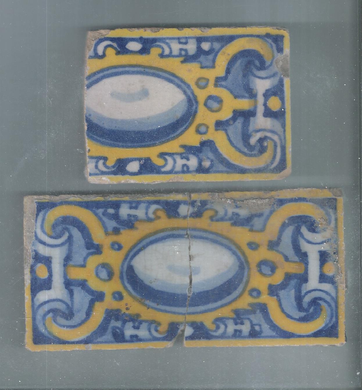 2 SPANISH EDGE TILES 17 CENTURY
