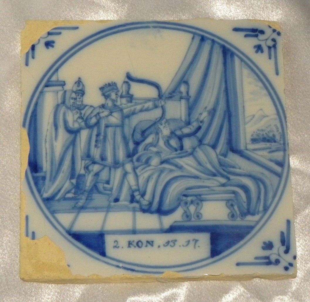 18th Century Dutch Delft Biblical Tile - 2 Kon (Kings)