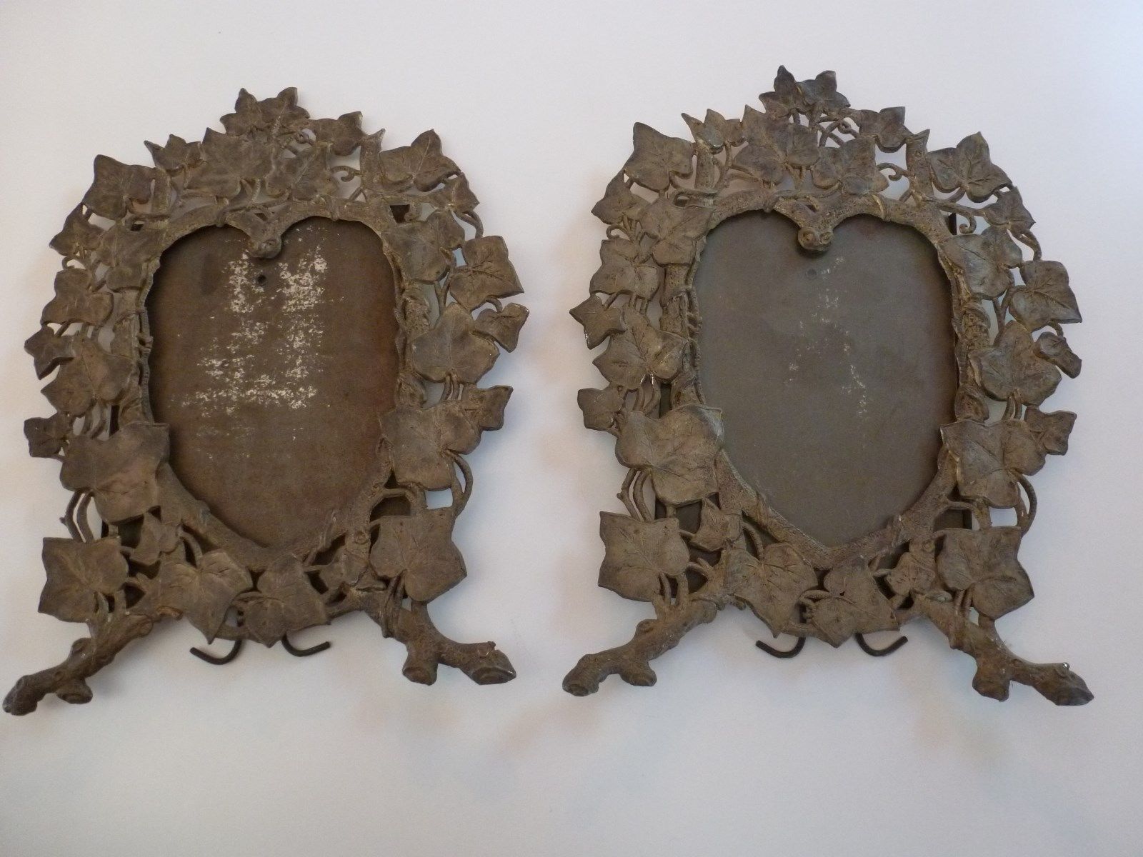 Title (ebay affiliate link): Antique Victorian Pair of Ivy Decorated Metal Picture Frames with Stands