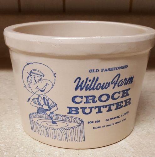 Vintage WILLOW FARM BUTTER STONEWARE CROCK LaGrange IL