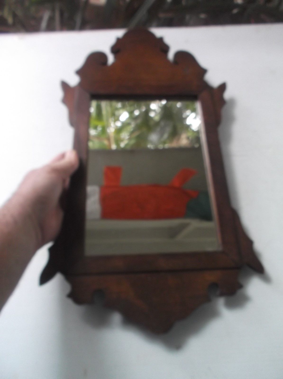 Title (ebay affiliate link): VTG SCROLLED WOOD FRAME MIRROR W/ WOOD BACKING HALLWAY FOYER STAINED OAK