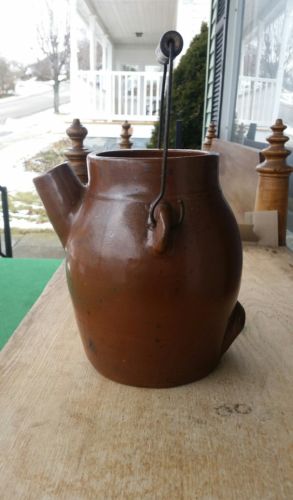 antique stoneware crock batter jug tan glaze approx 1 gal.