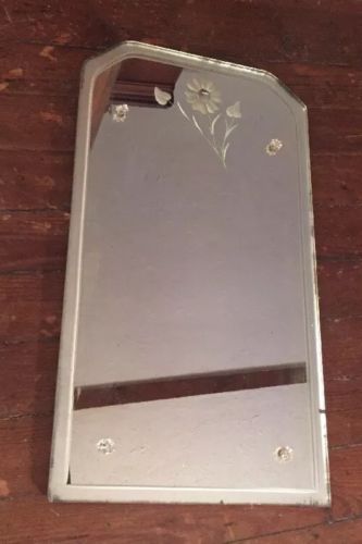 Vintage Antique Art Deco mirror frameless etched floral on wood