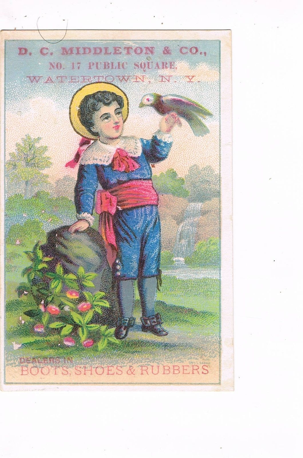 Title (ebay affiliate link): VICTORIAN ADVERTISING / TRADE Card D. C. MIDDLETON & CO. - WATERTOWN, NY