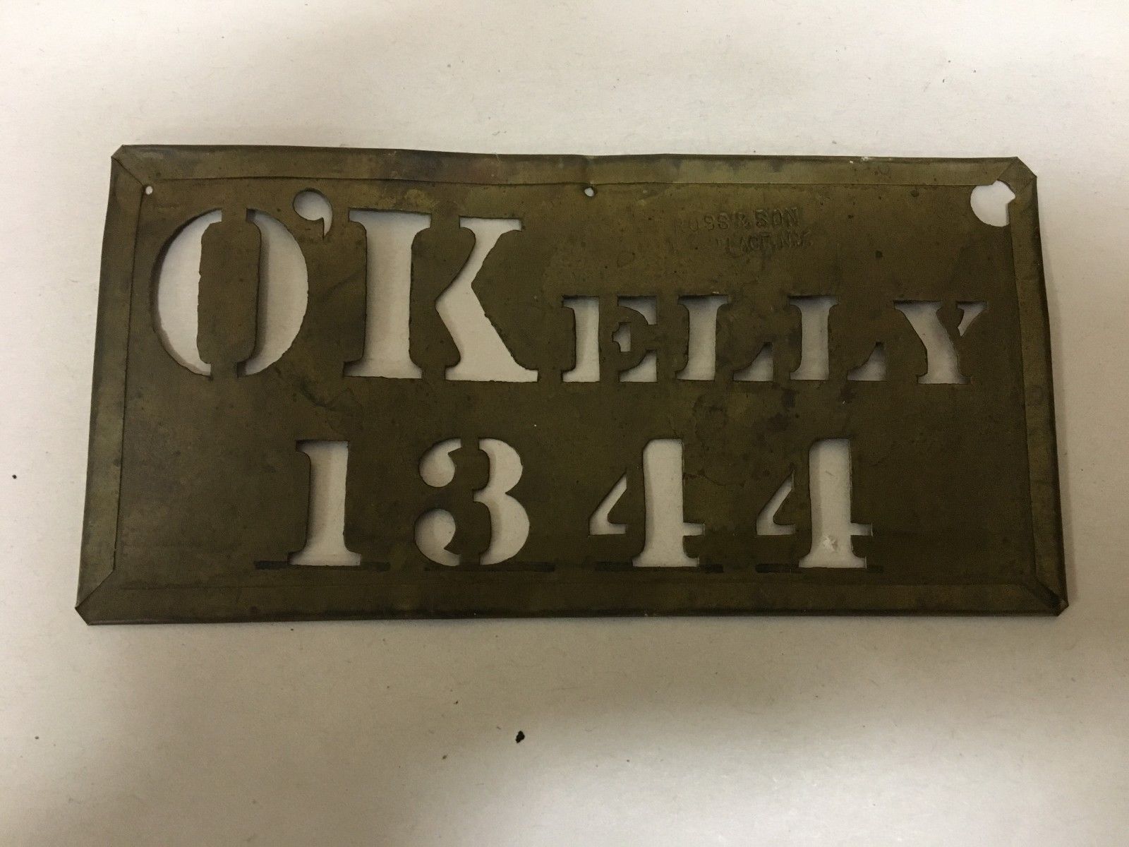 Antique Brass Crate /Barrel StencIL O KELLEY 1344