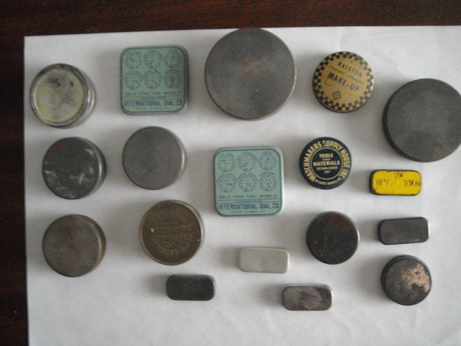 Vintage Watch Parts Sample Tin Lot - Advertising Adv Small Container Metal