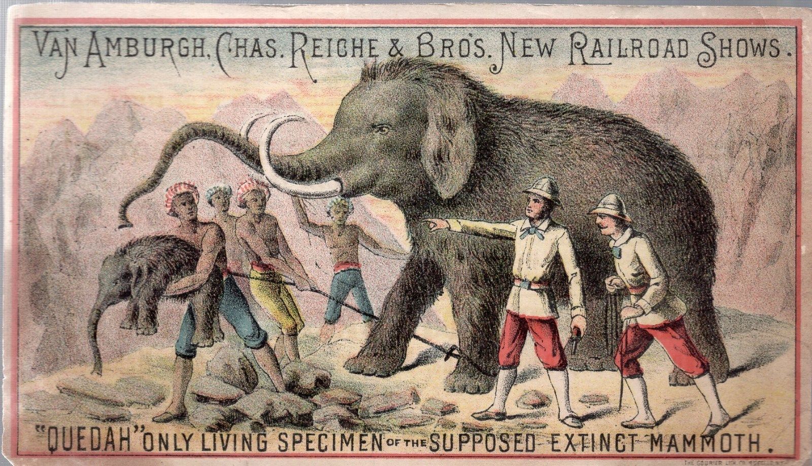 Title (ebay affiliate link): VINTAGE VICTORIAN TRADE CARD, VAN AMBURCH NEW RAILROAD SHOWS, EXTINCT MAMMOTH