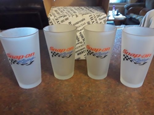 4 Snap On Racing, frosted drink glasses