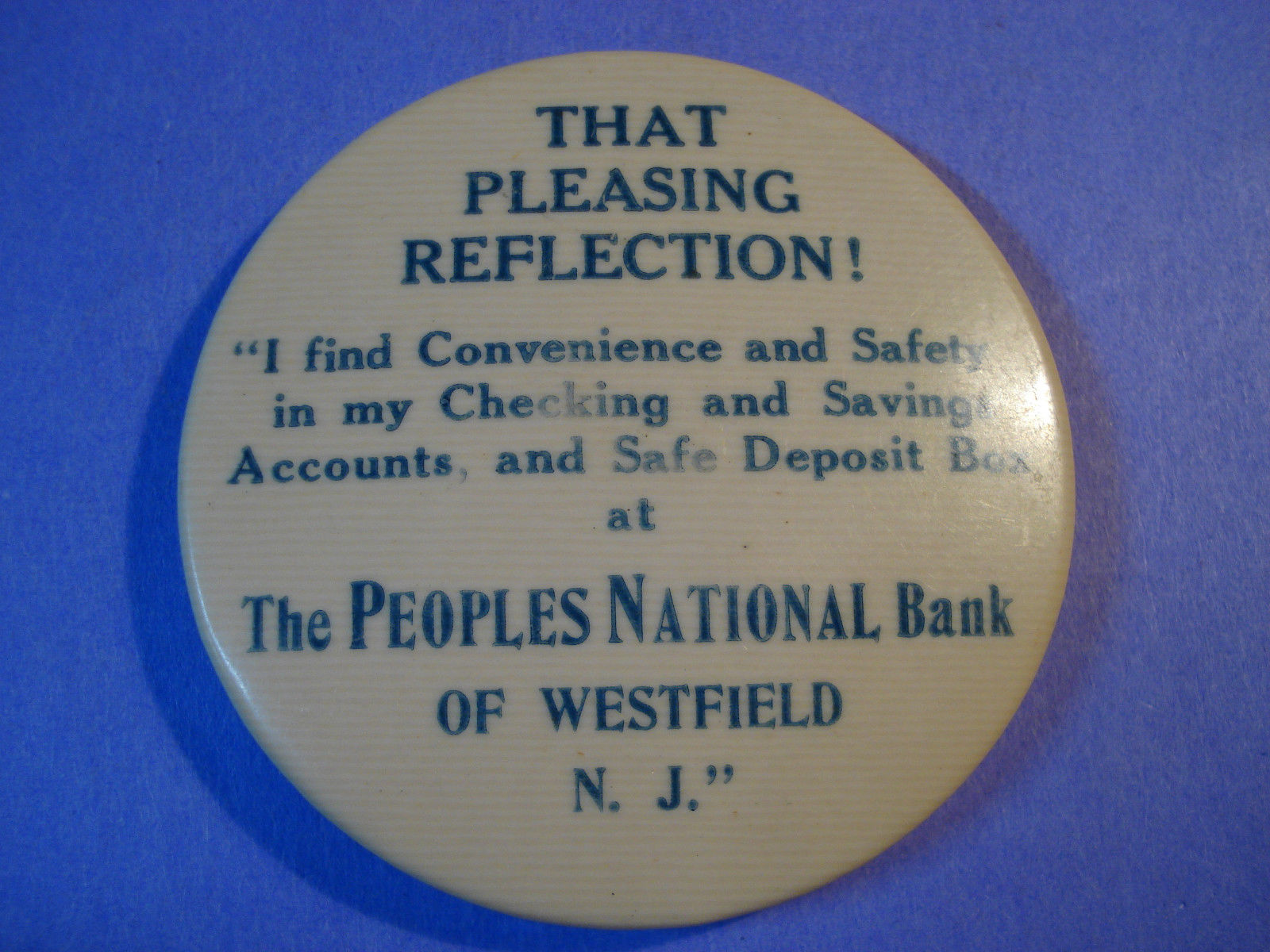 ANTIQUE ADVERTISING POCKET MIRROR CELLULOID PIN CUSHION PEOPLES NATIONAL BANK