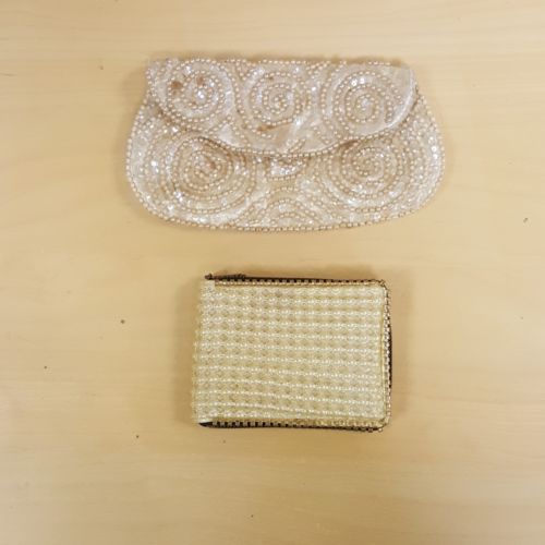 Women Vintage Lot of 2 Beaded Clutch Coin Purse Hand bag Wallet Keychain