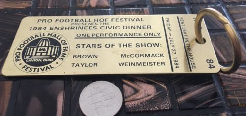 Title (ebay affiliate link): VTG 1984 Brass Pro Football HOF Dinner Ticket Keychain Jim Brown Jim Taylor