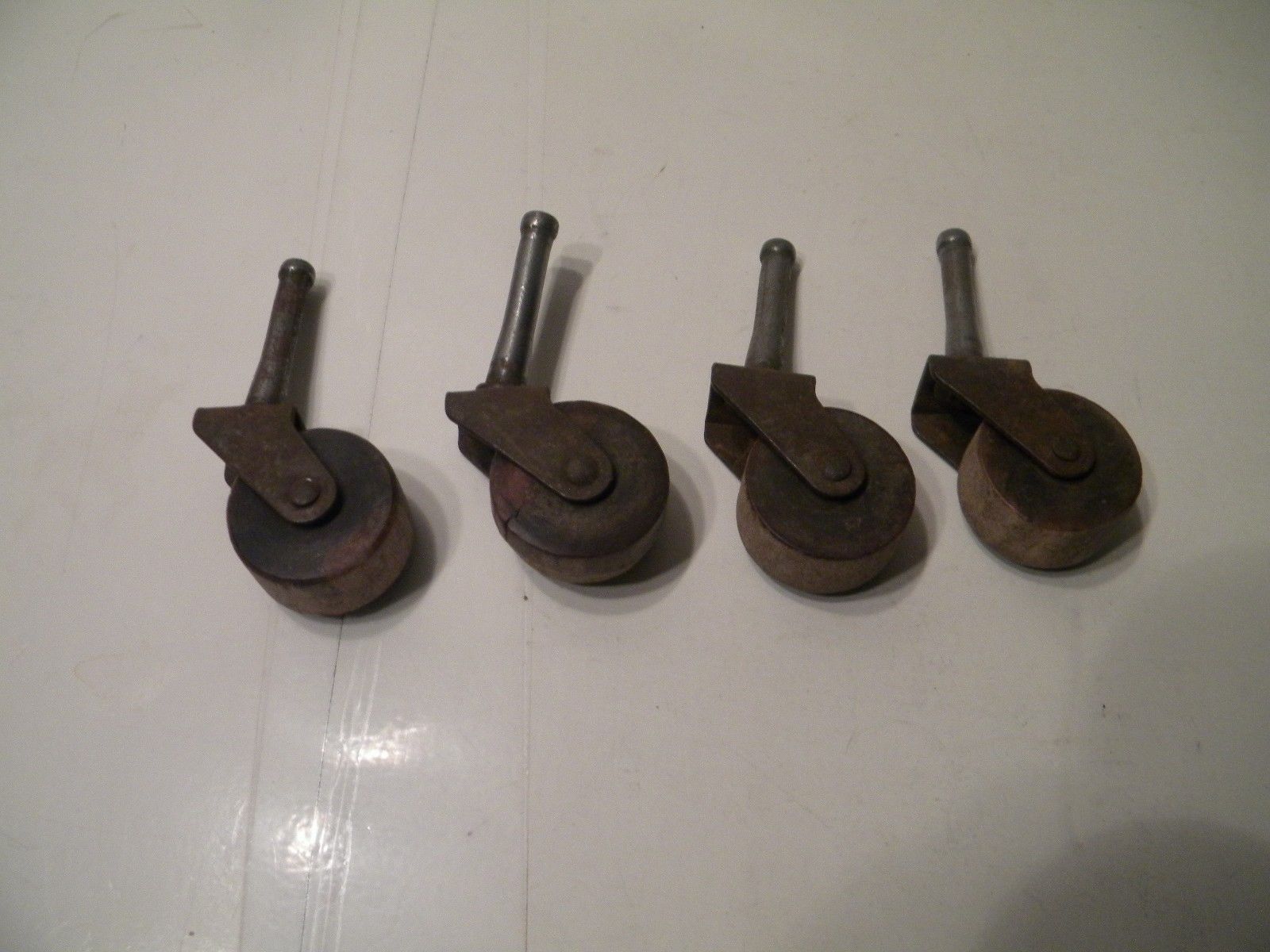4 vintage wooden swivel caster wheels 3'' tall wheels 1/1/4''