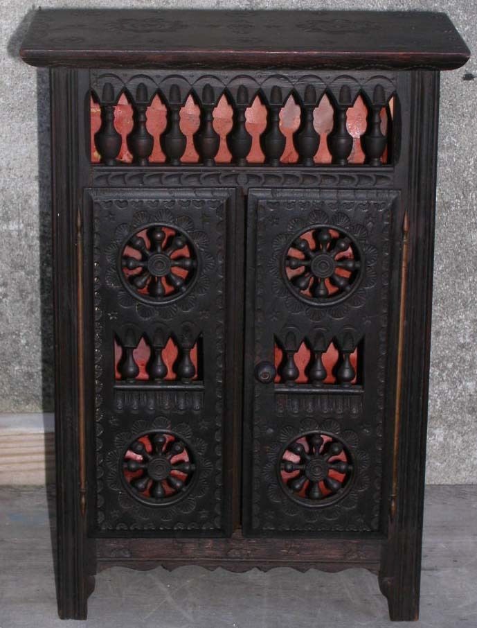 Title (ebay affiliate link): Antique Breton Miniature Carved Black Oak Dolls Armoire Cabinet Pinwheels Finial