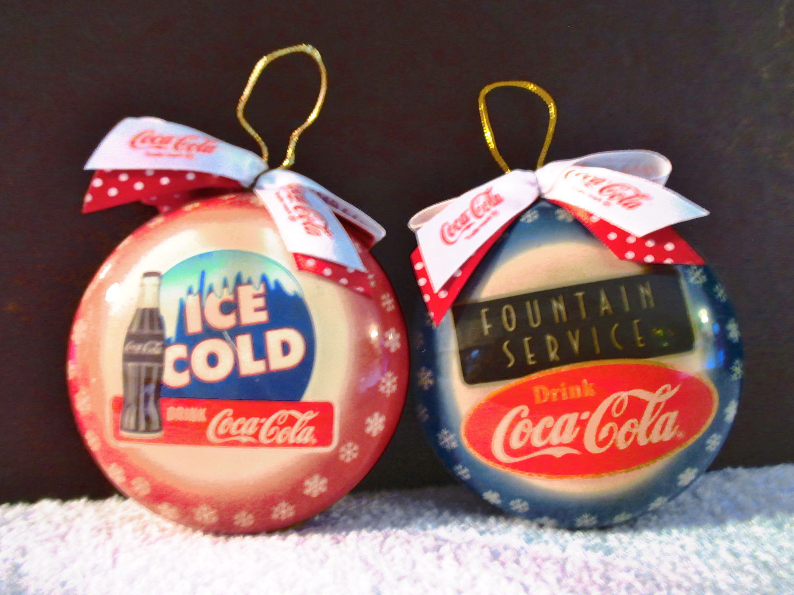 Title (ebay affiliate link): 2 Coca Cola Christmas Tree Ornaments of vintage looking service signs made 1997