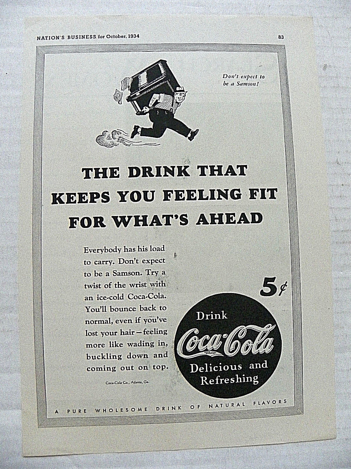 Title (ebay affiliate link): 1934,OCT. NATION''S BUSINESS "DRINK THAT KEEPS YOU FEELING FIT FOR WHAT''S AHEAD"
