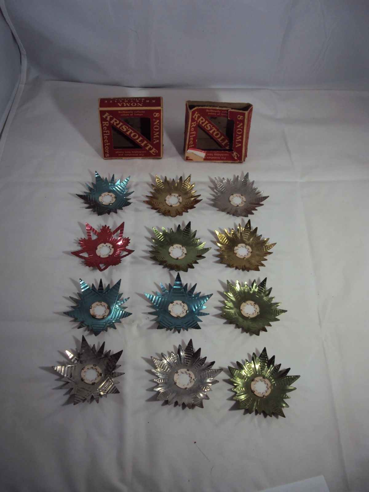 Title (ebay affiliate link): 12 TIN NOMA KRISTOLITE CHRISTMAS TREE LIGHT REFLECTORS IN ORIGINAL BOXES