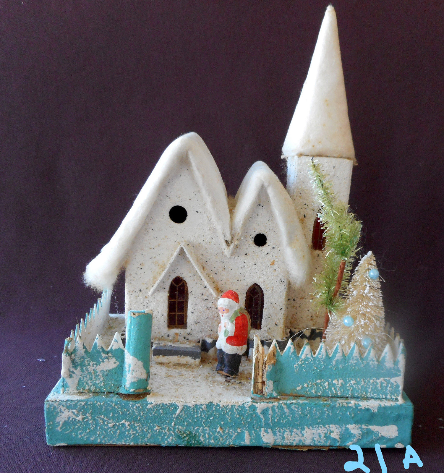 Title (ebay affiliate link): CHRISTMAS Village Putz House Church Vintage Made Japan Early Bottle Brush Tree