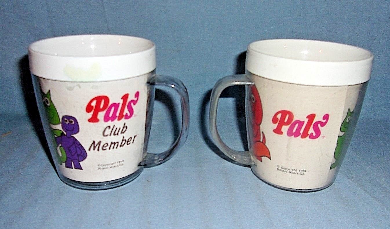 2 Vibntage Pals Vitamins Plastic Advertising Cups 1969
