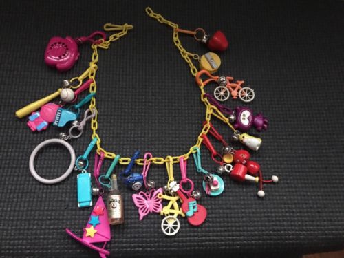 Title (ebay affiliate link): vintage 1980''s plastic CHARM NECKLACE w/ clip-on charms w/bells (20)