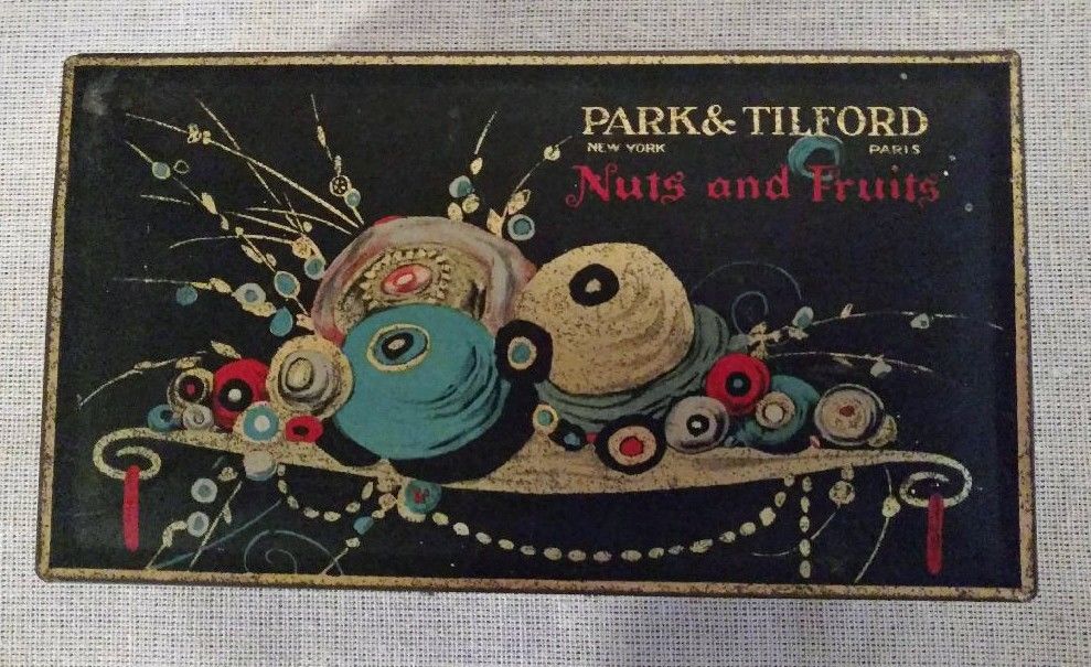 Title (ebay affiliate link): Vintage Art Nouveau/Deco Tin Box for Nuts and Fruits: Park & Tilford, Paris Ne