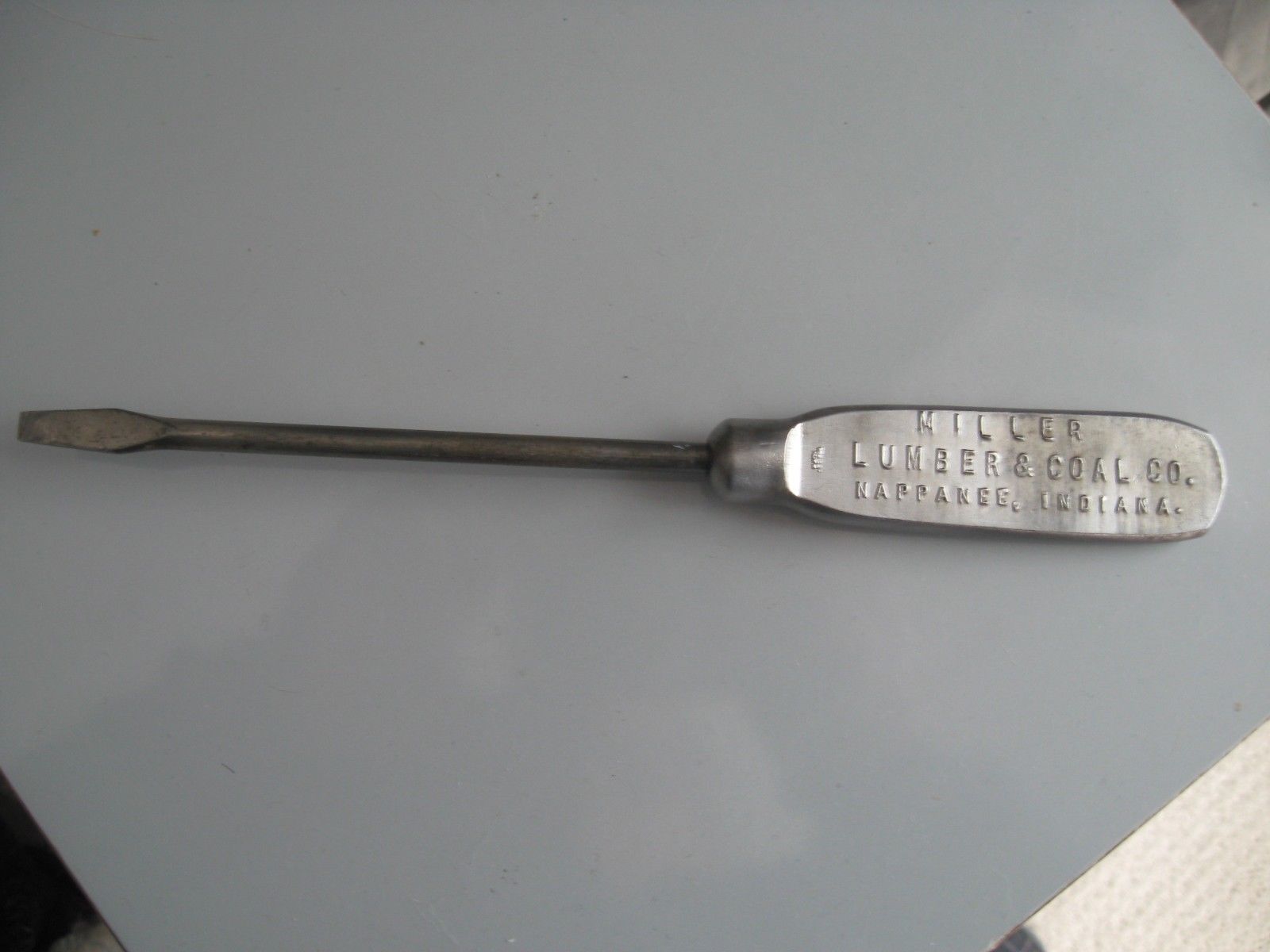 Title (ebay affiliate link): Vintage Advertising Metal Screwdriver Miller Lumber & Coal Co. Nappanee, IN