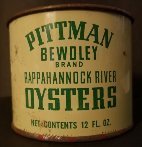 Title (ebay affiliate link): Vintage 12oz. Pittman Bewdley Rappahannock River Oysters Tin/Can Lancaster Va.