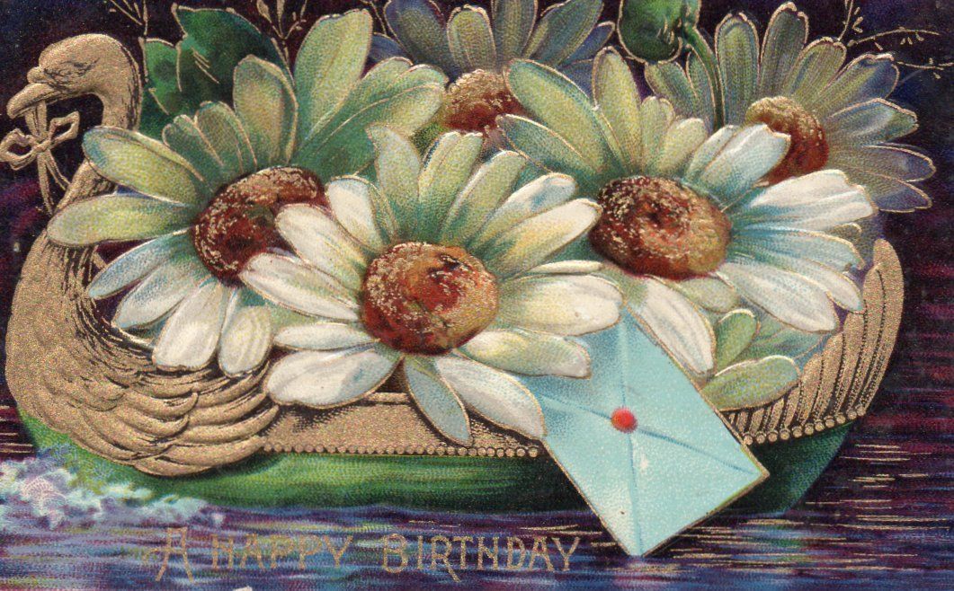 Title (ebay affiliate link): White Daisy Flowers & Envelope in a Gold Accented Boat Embossed Vintage Postcard