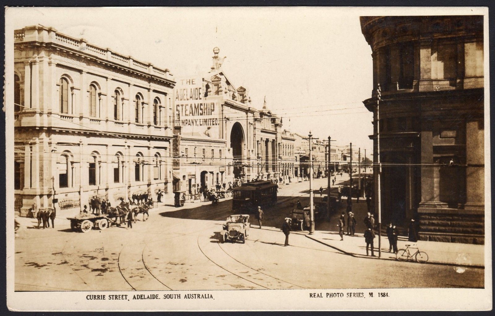 Title (ebay affiliate link): Australia 1926 Valentines real photo postcard of Currie Street, Adelaide, S.A