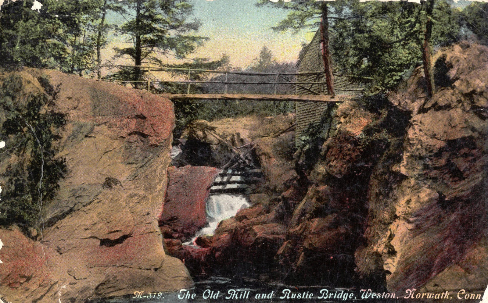 DB postcard c1910, Old Mill and Rustic Bridge, Weston, Norwalk, CT