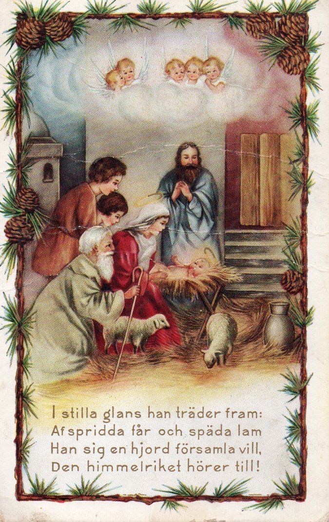 Title (ebay affiliate link): Little Angels in the Clouds looking over the Manger a Whitney Vintage Postcard