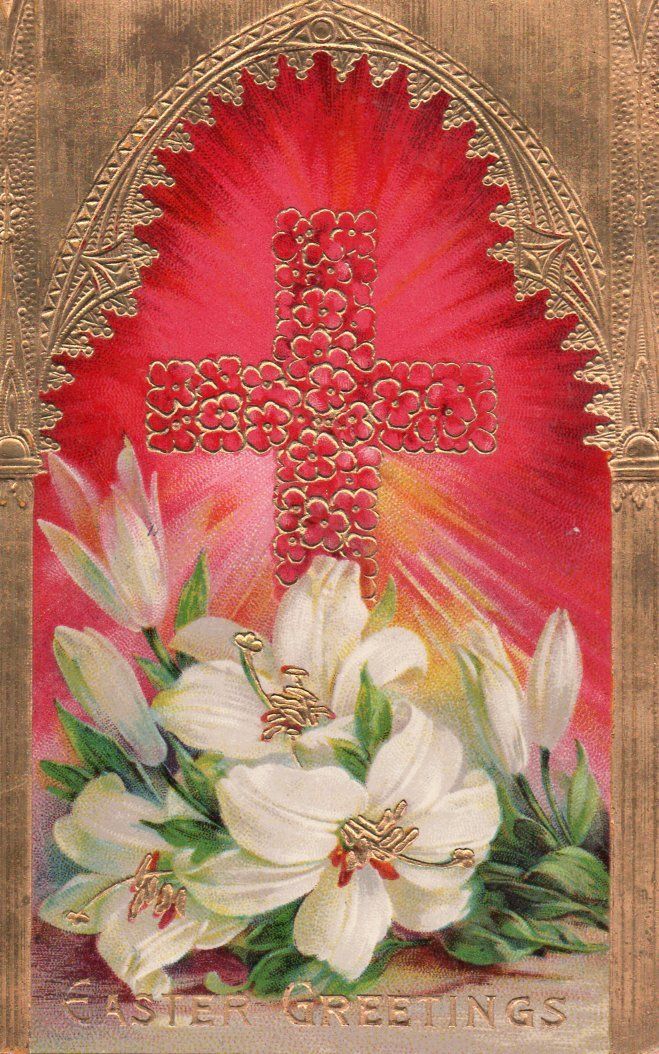 Title (ebay affiliate link): Easter Lillies with a Radient Cross with Gold Accents Vintage Postcard