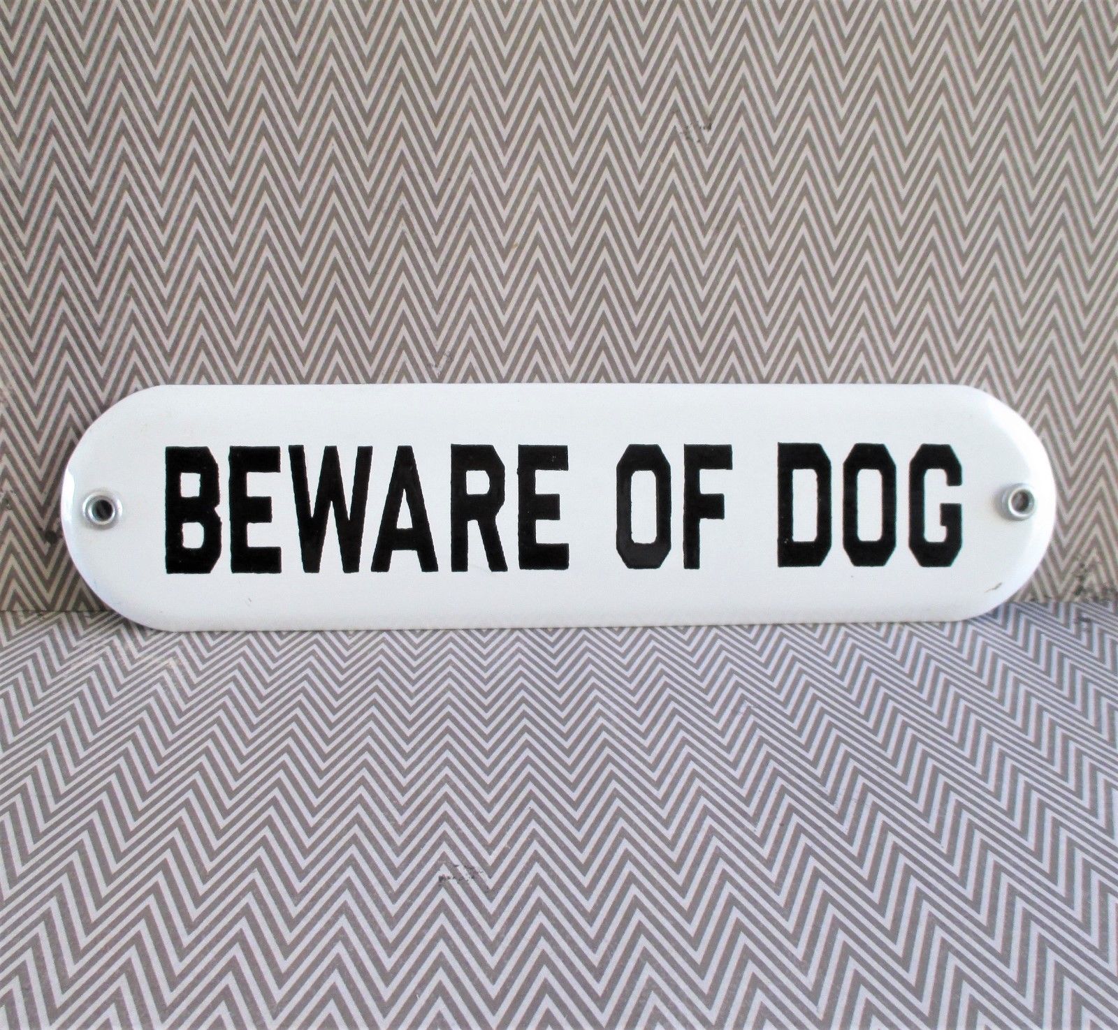 Title (ebay affiliate link): Vintage Black and White Porcelain Beware of Dog Sign