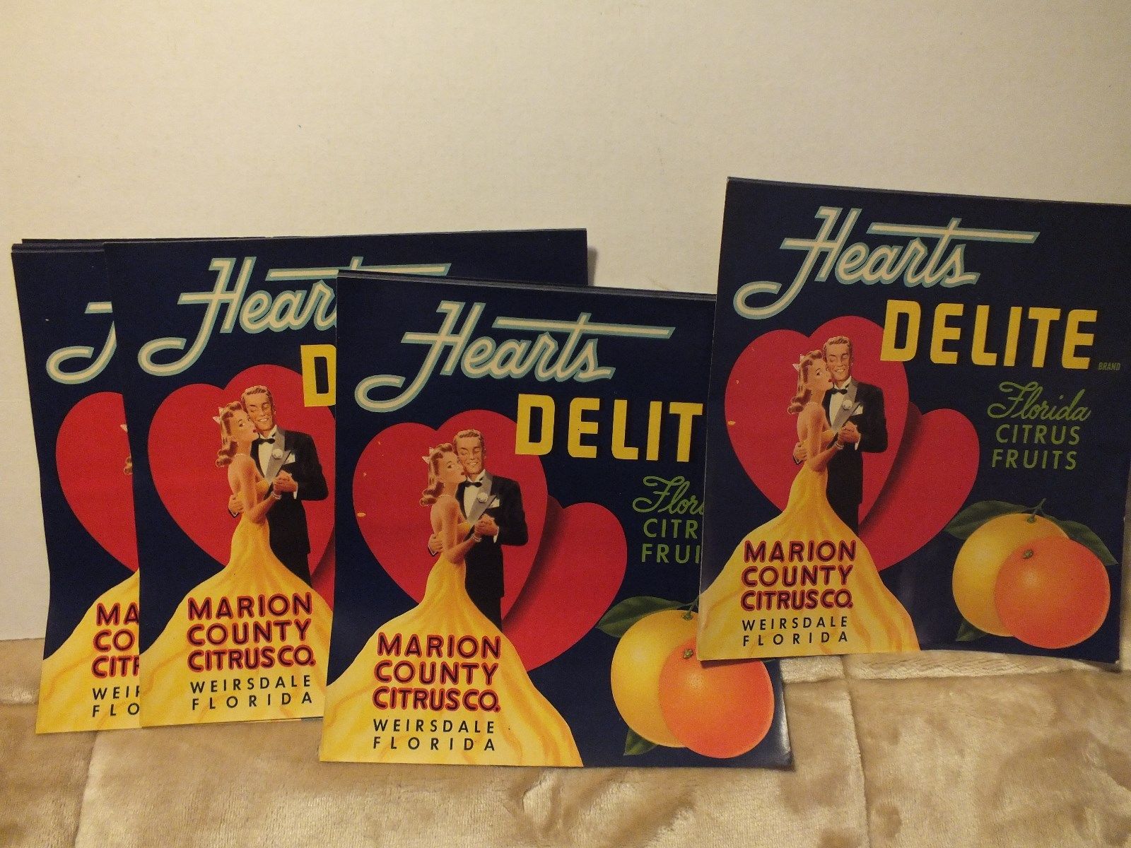 Title (ebay affiliate link): HEARTS DELITE Brand Crate Label Florida Citrus Fruits Weirsdale, Florida LOT