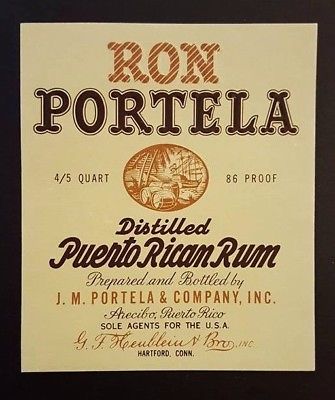 Title (ebay affiliate link): VINTAGE 4/5 QT RUM BOTTLE LABEL / RON PORTELA PUERTO RICO / 1940''s RARE